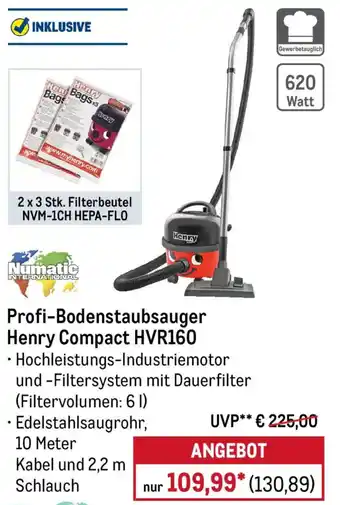 Jetzt im Angebot bei METRO: Numatic Profi-Bodenstaubsauger Henry Compact HVR160 ✅ Aktion gültig vom 19-01 bis 24-01.