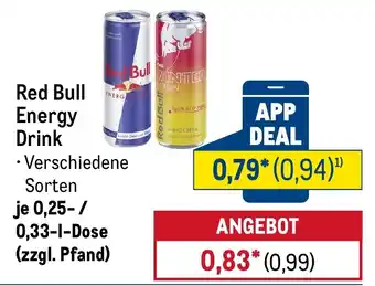 Den Preis von dem Red Bull Energy Drink finden Sie auch oben auf der Website, zusammen mit dem Datum, ab wann das Angebot erhältlich ist. Sie können die Preise auch im aktuellen METRO Prospekt nachhalten oder auf der METRO Website nachschauen. Durch die Angebote können Sie sicher sein, die METRO Produkte zum absoluten Bestpreis zu ergattern.