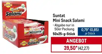 Den Preis von dem Suntat Mini Snack Salami finden Sie auch oben auf der Website, zusammen mit dem Datum, ab wann das Angebot erhältlich ist. Sie können die Preise auch im aktuellen METRO Prospekt nachhalten oder auf der METRO Website nachschauen. Durch die Angebote können Sie sicher sein, die METRO Produkte zum absoluten Bestpreis zu ergattern.