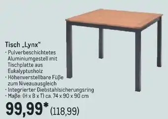 Den Preis von dem Tisch „Lynx" finden Sie auch oben auf der Website, zusammen mit dem Datum, ab wann das Angebot erhältlich ist. Sie können die Preise auch im aktuellen METRO Prospekt nachhalten oder auf der METRO Website nachschauen. Durch die Angebote können Sie sicher sein, die METRO Produkte zum absoluten Bestpreis zu ergattern.