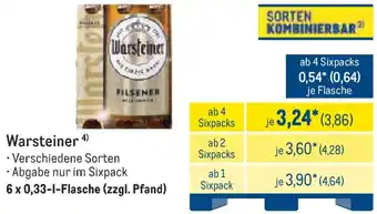 Den Preis von dem Warsteiner finden Sie auch oben auf der Website, zusammen mit dem Datum, ab wann das Angebot erhältlich ist. Sie können die Preise auch im aktuellen METRO Prospekt nachhalten oder auf der METRO Website nachschauen. Durch die Angebote können Sie sicher sein, die METRO Produkte zum absoluten Bestpreis zu ergattern.