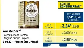 Den Preis von dem Warsteiner finden Sie auch oben auf der Website, zusammen mit dem Datum, ab wann das Angebot erhältlich ist. Sie können die Preise auch im aktuellen METRO Prospekt nachhalten oder auf der METRO Website nachschauen. Durch die Angebote können Sie sicher sein, die METRO Produkte zum absoluten Bestpreis zu ergattern.