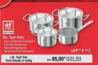 ZWILLING Div. Topf-Sets z.B.: Topf-Set Twin Classic 4-teilig Angebote und Aktionen bei METRO