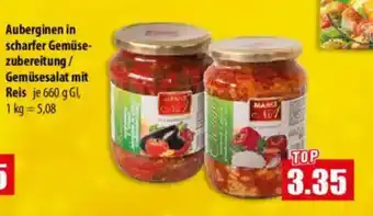 Auberginen in scharfer Gemüsezubereitung/ Gemüsesalat mit Reis Aktion bei Mix Markt