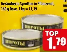 Jetzt im Angebot bei Mix Markt: Geräucherte Sprotten in Pflanzenöl ✅ Aktion gültig vom 16-02 bis 22-02.