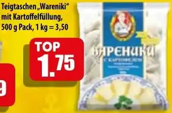 Jetzt im Angebot bei Mix Markt: Teigtaschen ,,Wareniki" mit Kartoffelfüllung ✅ Aktion gültig vom 16-02 bis 22-02.