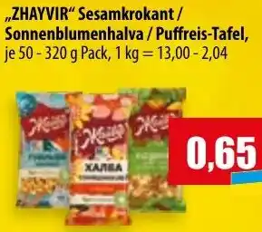ZHAYVIR Sesamkrokant/ Sonnenblumenhalva / Puffreis-Tafel Angebote und Aktionen bei Mix Markt