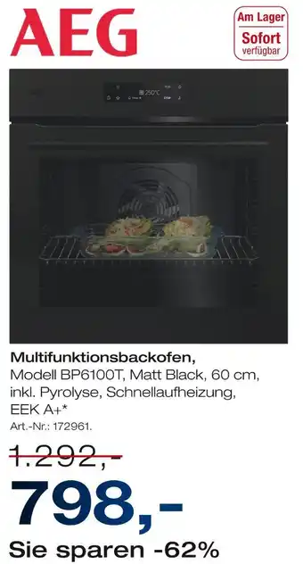 Jetzt im Angebot bei Möbel Inhofer: Aeg multifunktionsbackofen modell bp6100t ✅ Aktion gültig vom 8-01 bis 31-01.