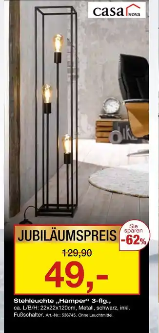 Den Preis von dem Casa nova stehleuchte „hamper“ 3-flg finden Sie auch oben auf der Website, zusammen mit dem Datum, ab wann das Angebot erhältlich ist. Sie können die Preise auch im aktuellen Möbel Inhofer Prospekt nachhalten oder auf der Möbel Inhofer Website nachschauen. Durch die Angebote können Sie sicher sein, die Möbel Inhofer Produkte zum absoluten Bestpreis zu ergattern.