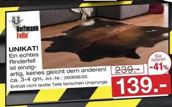 Jetzt im Angebot bei Möbel Inhofer: Heitmann felle echtes rinderfell ✅ Aktion gültig vom 23-02 bis 21-03.