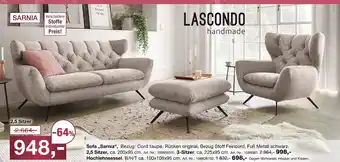Lascondo sofa sarnia 2,5-sitzer ist jetzt im Angebot bei Möbel Inhofer, gültig vom 16-04-2026 bis 02-05-2026. Besuchen Sie die Website von Möbel Inhofer oder kaufen Sie Lascondo sofa sarnia 2,5-sitzer direkt im Geschäft. Auf Prospektangebote.de finden Sie immer die besten aktuellen Aktionen. Vergleichen Sie Lascondo sofa sarnia 2,5-sitzer mit anderen Angeboten und prüfen Sie, ob sich ein Kauf jetzt lohnt. Behalten Sie kommende Aktionen im Blick, denn manche Produkte sind nur nächste Woche oder nur vor Ort verfügbar.Häufig gestellte Fragen über Lascondo sofa sarnia 2,5-sitzer