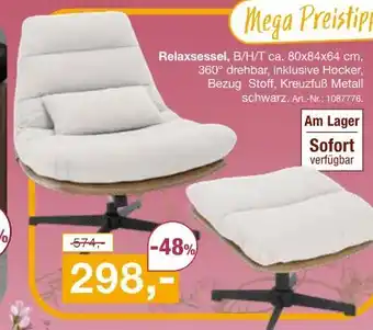 Relaxsessel ist jetzt im Angebot bei Möbel Inhofer, gültig vom 16-04-2026 bis 03-05-2026. Besuchen Sie die Website von Möbel Inhofer oder kaufen Sie Relaxsessel direkt im Geschäft. Auf Prospektangebote.de finden Sie immer die besten aktuellen Aktionen. Vergleichen Sie Relaxsessel mit anderen Angeboten und prüfen Sie, ob sich ein Kauf jetzt lohnt. Behalten Sie kommende Aktionen im Blick, denn manche Produkte sind nur nächste Woche oder nur vor Ort verfügbar.Häufig gestellte Fragen über Relaxsessel