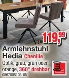 Jetzt im Angebot bei Möbelfundgrube: Armlehnstuhl Hedia Chenille ✅ Aktion gültig vom 15-01 bis 28-01.