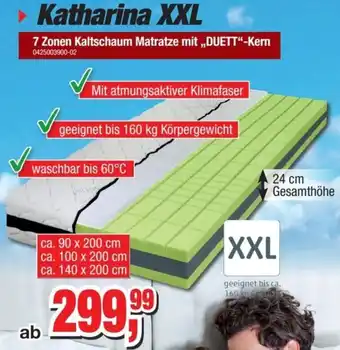 Den Preis von dem Katharina XXL 7 Zonen Kaltschaum Matratze mit „DUETT" Kern finden Sie auch oben auf der Website, zusammen mit dem Datum, ab wann das Angebot erhältlich ist. Sie können die Preise auch im aktuellen Möbelfundgrube Prospekt nachhalten oder auf der Möbelfundgrube Website nachschauen. Durch die Angebote können Sie sicher sein, die Möbelfundgrube Produkte zum absoluten Bestpreis zu ergattern.