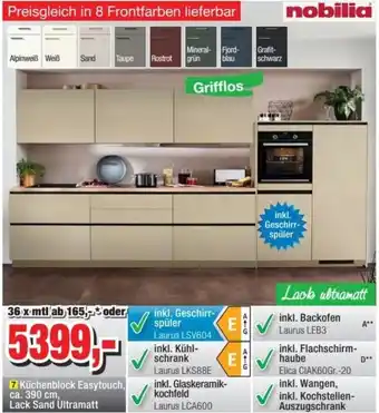 Jetzt im Angebot bei Möbelfundgrube: Küchenblock Easytouch, ca. 390 cm, Lack Sand Ultramatt ✅ Aktion gültig vom 15-01 bis 28-01.
