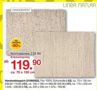 Jetzt im Angebot bei Möbelzentrum Pforzheim: Linea natura handwebteppich ✅ Aktion gültig vom 3-01 bis 24-01.