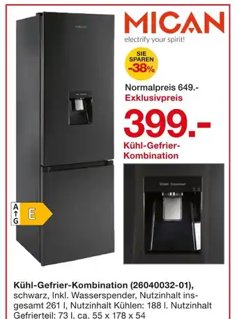 Mican kühl-gefrier-kombination Aktion bei Möbelzentrum Pforzheim