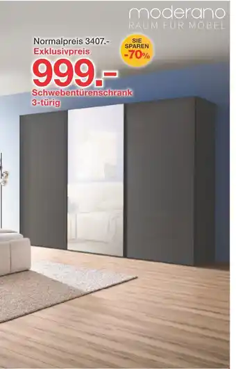Jetzt im Angebot bei Möbelzentrum Pforzheim: Moderano schwebetürenschrank 3-türig ✅ Aktion gültig vom 21-02 bis 7-03.