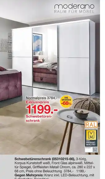 Jetzt im Angebot bei Möbelzentrum Pforzheim: Moderano schwebetürenschrank ✅ Aktion gültig vom 7-02 bis 21-02.