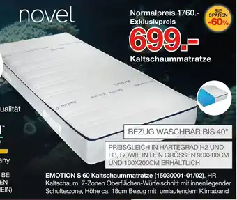 Jetzt im Angebot bei Möbelzentrum Pforzheim: Novel emotion s 60 kaltschaummatratze ✅ Aktion gültig vom 7-03 bis 28-03.