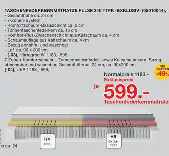 Jetzt im Angebot bei Möbelzentrum Pforzheim: Taschenfederkernmatratze pulse 240 ttfk -exklusiv ✅ Aktion gültig vom 25-04 bis 9-05.
