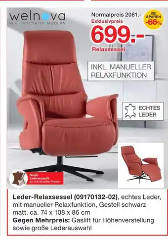Welnova leder-relaxsessel-Angebot bei Möbelzentrum Pforzheim