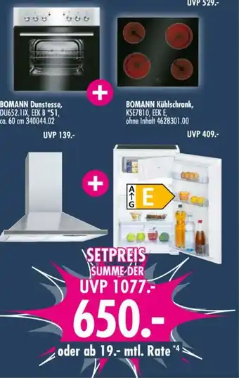 Jetzt im Angebot bei Möbel Boss: BOMANN Dunstesse + Kühlschrank + ✅ Aktion gültig vom 17-01 bis 30-01.