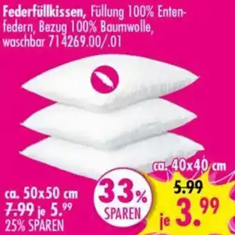Das Angebot ist in verschiedenen Geschäften erhältlich. Schauen Sie sich alle Produkte an, um das günstigste Federfüllkissen zu ergattern. Wenn Sie gerne nachschauen möchten, ob der Artikel woanders noch günstiger ist, werfen Sie einen Blick auf die Kategorie 'Möbel und Wohnaccessoire'. Möglicherweise sind diese Angebote auch interessant für Sie: Federfüllkissen ca. 50x50 cm, Angebot 2 & Angebot 3.