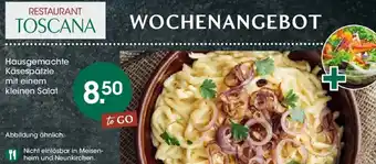 Dieses Hausgemachte Käsespätzle mit einem kleinen Salat ist in den folgenden Filialen verfügbar, basierend auf deinem eingestellten Standort: