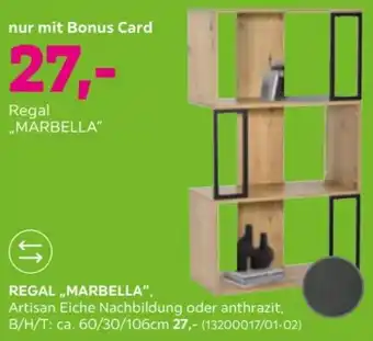 Regal „MARBELLA" ist jetzt im Angebot bei Mömax, gültig vom 26-01-2026 bis 04-02-2026. Besuchen Sie die Website von Mömax oder kaufen Sie Regal „MARBELLA" direkt im Geschäft. Auf Prospektangebote.de finden Sie immer die besten aktuellen Aktionen. Vergleichen Sie Regal „MARBELLA" mit anderen Angeboten und prüfen Sie, ob sich ein Kauf jetzt lohnt. Behalten Sie kommende Aktionen im Blick, denn manche Produkte sind nur nächste Woche oder nur vor Ort verfügbar.Häufig gestellte Fragen über Regal „MARBELLA"