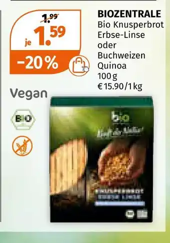 Biozentrale bio knusperbrot erbse-linse oder buchweizen quinoa Angebote und Aktionen bei Müller