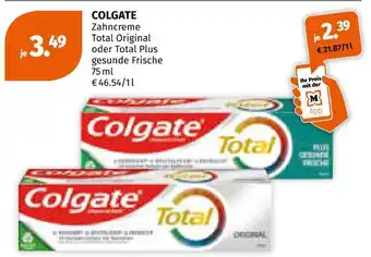 COLGATE Zahncreme Total Original oder Total Plus gesunde Frische Angebote und Online Aktionen direkt aus dem aktuellen Müller Angebot