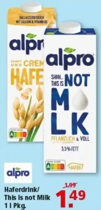 Jetzt im Angebot bei Multi Markt: alpro Haferdrink/ This is not Milk ✅ Aktion gültig vom 23-02 bis 28-02.