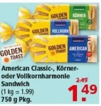 GOLDEN TOAST American Classic-, Körner- oder Vollkornharmonie Sandwich Angebote und Aktionen bei Multi Markt