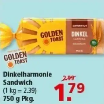 Jetzt im Angebot bei Multi Markt: GOLDEN TOAST Dinkelharmonie Sandwich ✅ Aktion gültig vom 2-03 bis 7-03.