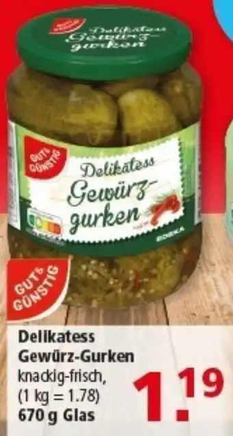 Jetzt im Angebot bei Multi Markt: GUT&GÜNSTIG Delikatess Gewürz-Gurken ✅ Aktion gültig vom 5-01 bis 10-01.