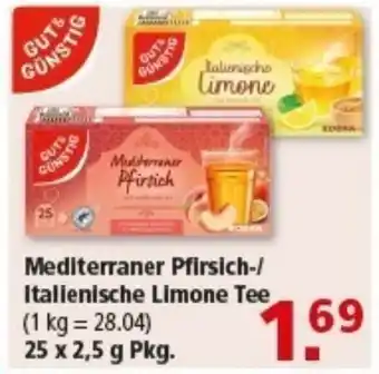Jetzt im Angebot bei Multi Markt: GUTS&GÜNSTIG Mediterraner Pfirsich-/ Italienische Limone Tee ✅ Aktion gültig vom 19-01 bis 24-01.