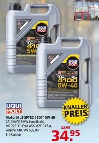 LIQUI MOLY Motoröl „TOPTEC 4100" 5W-40-Rabatt bei Multi Markt