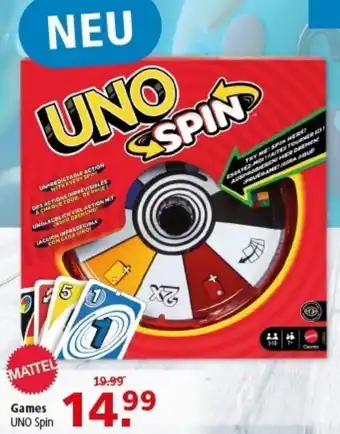 Jetzt im Angebot bei Multi Markt: MATTEL Games UNO Spin ✅ Aktion gültig vom 5-01 bis 10-01.