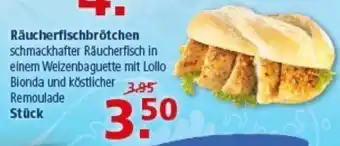 schmackhafter Räucherfisch in einem Weizenbaguette mit Lollo Bionda und köstlicher 3.95 Remoulade Stück
