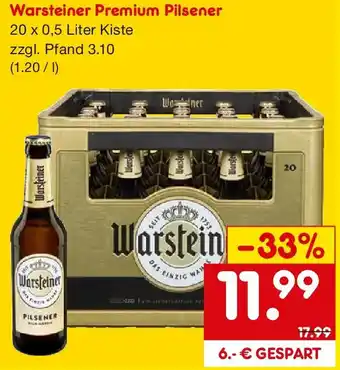Jetzt im Angebot bei Netto Getränke Discount: Warsteiner Premium Pilsener ✅ Aktion gültig vom 12-04 bis 18-04.