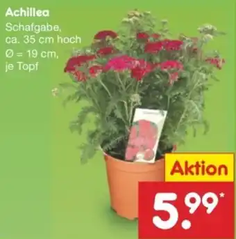 Den Preis von dem Achillea finden Sie auch oben auf der Website, zusammen mit dem Datum, ab wann das Angebot erhältlich ist. Sie können die Preise auch im aktuellen Netto Marken-Discount Prospekt nachhalten oder auf der Netto Marken-Discount Website nachschauen. Durch die Angebote können Sie sicher sein, die Netto Marken-Discount Produkte zum absoluten Bestpreis zu ergattern.
