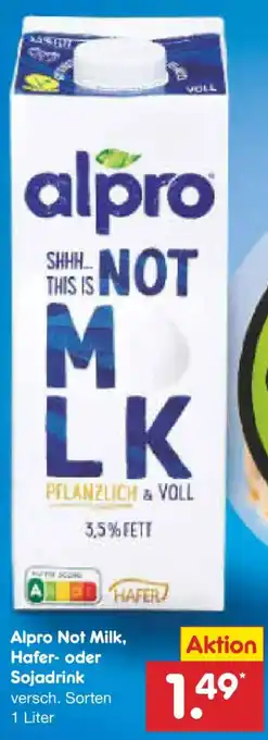 Alpro Not Milk, Hafer oder Sojadrink-Angebot bei Netto Marken-Discount