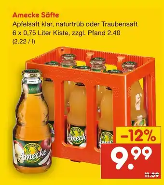 Amecke säfte apfelsaft klar, naturtrüb oder traubensaft-Angebot bei Netto Marken-Discount