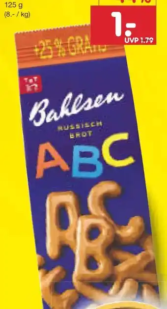 Jetzt im Angebot bei Netto Marken-Discount: Bahlsen ABC Russisch Brot ✅ Aktion gültig vom 23-02 bis 1-03.
