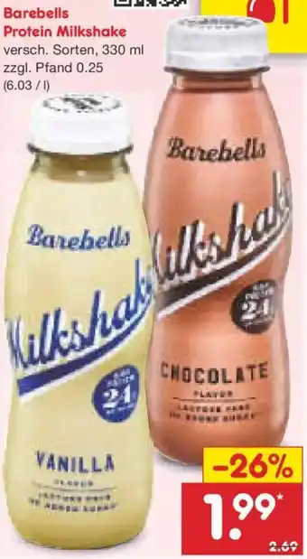 Den Preis von dem Barebells Protein Milkshake finden Sie auch oben auf der Website, zusammen mit dem Datum, ab wann das Angebot erhältlich ist. Sie können die Preise auch im aktuellen Netto Marken-Discount Prospekt nachhalten oder auf der Netto Marken-Discount Website nachschauen. Durch die Angebote können Sie sicher sein, die Netto Marken-Discount Produkte zum absoluten Bestpreis zu ergattern.