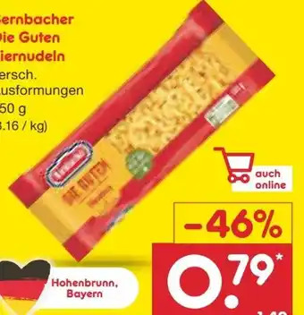 Jetzt im Angebot bei Netto Marken-Discount: Bernbacher Eiernudeln Die Guten ✅ Aktion gültig vom 19-01 bis 25-01.