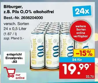 Bitburger, z.B. Pils 0,0% alkoholfrei-Rabatt bei Netto Marken-Discount