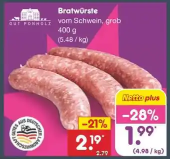 Abgesehen von Bratwürste, bietet Netto Marken-Discount eine Menge anderer Artikel an. Behalten Sie den wöchentlichen Netto Marken-Discount Prospekt im Blick, um die besten Angebote und Aktionen nicht zu verpassen. Abgesehen von Bratwürste können Sie weitere, interessante Angebote entdecken: Bratwürste, Gut Ponholz Bratwürste & Angebot 3.