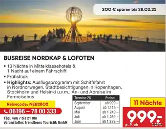 Jetzt im Angebot bei Netto Marken-Discount: Busreise nordkap & lofoten 11 Nächte ✅ Aktion gültig vom 2-02 bis 7-02.